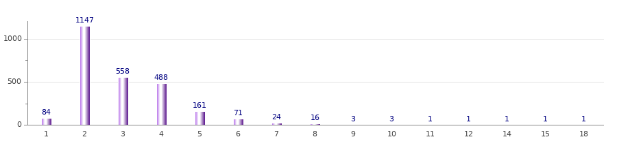 Ensimmäisessä graafissa esitetään, montako minkäkin pituista nimenosaa aineistossa on. Noin puolet nimenosista on suomen kielelle ominaiseen tapaan kaksitavuisia, mutta kolmi- ja neliosaisiakin on jonkin verran. Erityisen pitkät nimenosat kuuluvat sellaisille bakronyyminimille, jotka on yksiosaisen virallisen nimen johdannaisina luokiteltu yksiosaisiksi.