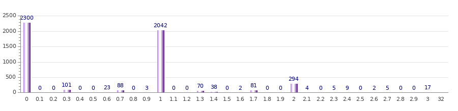 Seuraavissa pylväiköissä esitetään aluksi montako nimeämisperustetta yhdellä nimenosalla on, kun korjauskertoimet huomioidaan. Vaaka-akseli kuvaa nimeämisperusteiden määrää ja pylväiden korkeus tämän määrän omaavien nimien lukumäärää. Tämän jälkeen esitetään nimenosan nimeämisperusteiden määrä korjauskertoimet huomioiden ja eriteltynä viiteen erilliseen pylväikköön nimen viittaustason (yksilö, malli, merkki, alalaji, laji) mukaisesti. Kommentti näistä kaikista on pylväikköjen jäljessä.