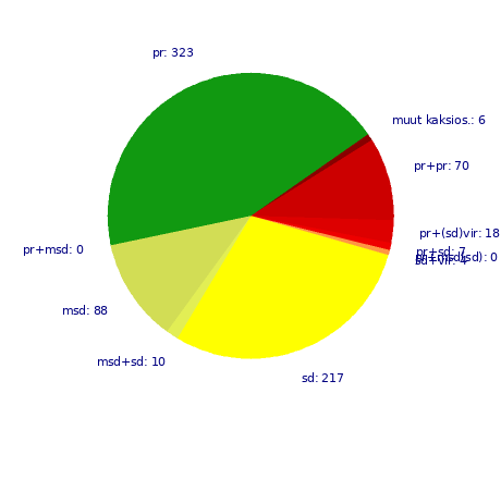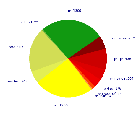Vironkielisten primäärinimien nimeämisperusteet jakautuvat pääosin samoin kuin suomenkielistenkin, joskin eksudaatit (erit. ääni) ja koko ja muoto hieman korostuvat nimeämisperusteena suomen aineistoon verrattuna värin ja yksittäisten osien jäädessä vähäisemmälle huomiolle. Seuraavat graafit havainnollistavat nimeämisperusteiden yhtäläisyyttä ja eroja.