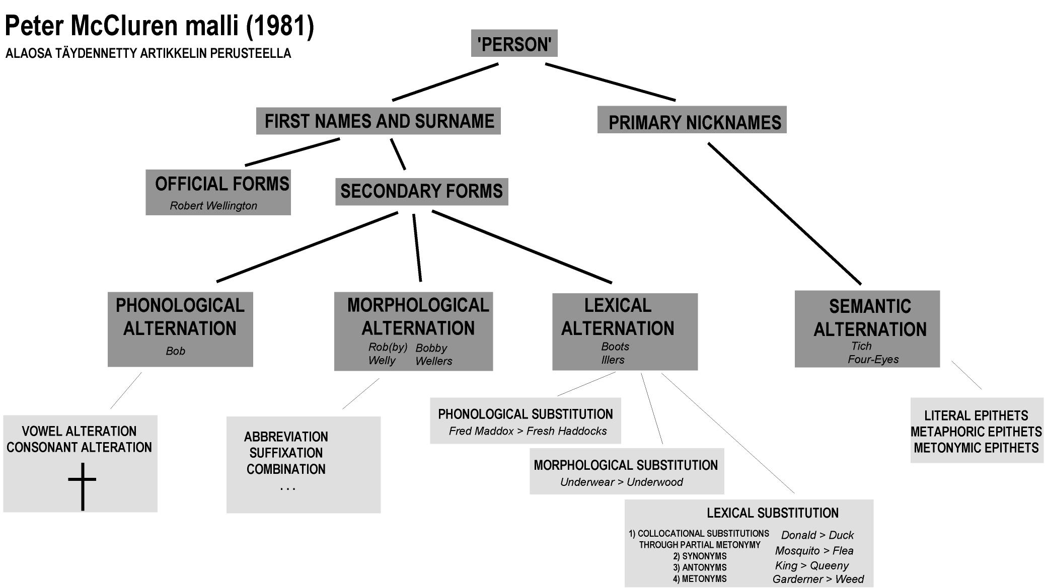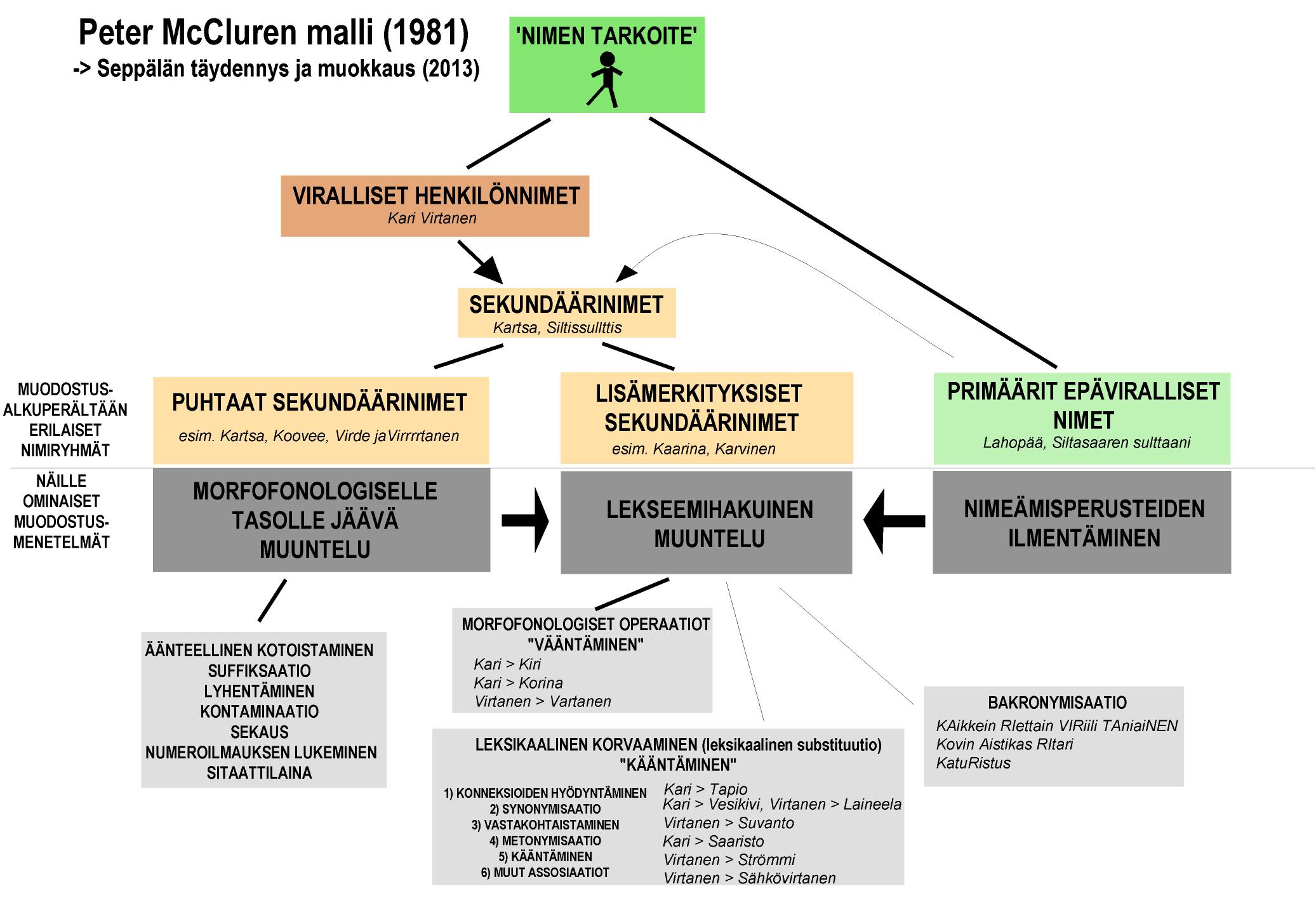 Suomen kieleen ja kulttuurioloihin sovellettuna McCluren mallia tai sen tässä esitettyä laajennosta tulisi hyödyntää enemmänkin esimerkiksi ylimalkaisesti assosiaationimiksi tai sekundääreiksi nimivarianteiksi luokiteltujen paikannimien tutkimuksessa.