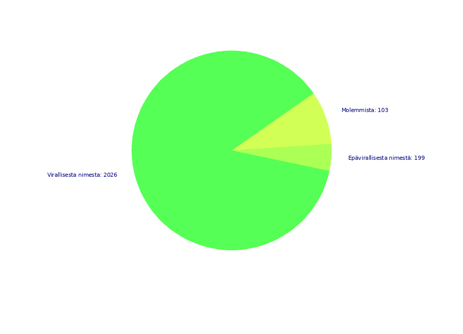Seuraava graafi osoittaa, missä määrin sekundäärinimen kantana oleva nimi on virallinen tai epävirallinen. Toisinaan varman kantanimen osoittaminen ei ole mahdollista, vaan nimi on ikään kuin sekoitus sekä epävirallista sekundäärinimeä että tämän samanaikaisesti rinnalla ja taustalla olevaa aiempaa nimeä.