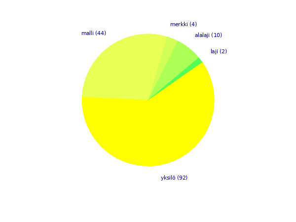 Seuraavassa graafi siitä, miten väriin viittaavat nimet jakautuvat kulkineennimistössä eri viittaustason nimiin: