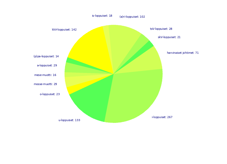 Puhtaiden sekundäärinimien muodostamista käsiteltiin osiossa D, erityisesti luvussa D:4. Luvussa D:4.2 esitettiin, miten päättyviä muotteja hyödynnettiin ja miten yleisiä nämä muotit olivat. Ennen tämän luvun asiaan siirtymistä kertaamme tässä mainitusta luvusta lainatun graafin: